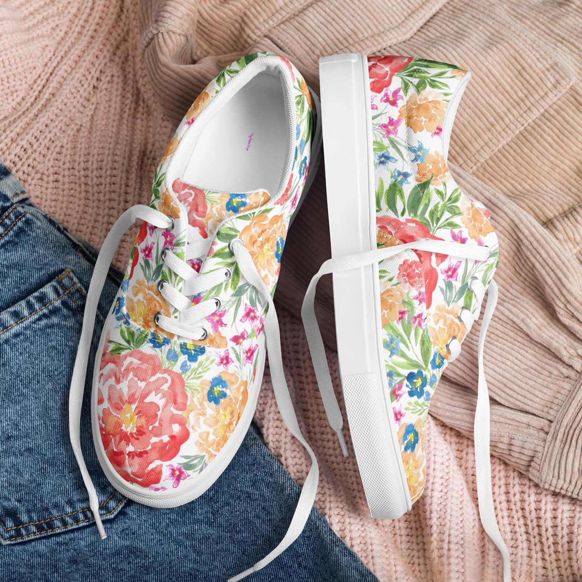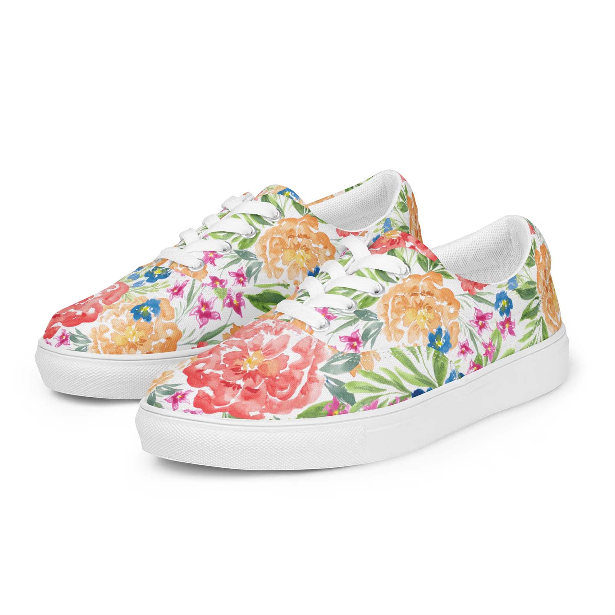 Watercolor Flowers Lace-Up Canvas Shoes DI2
